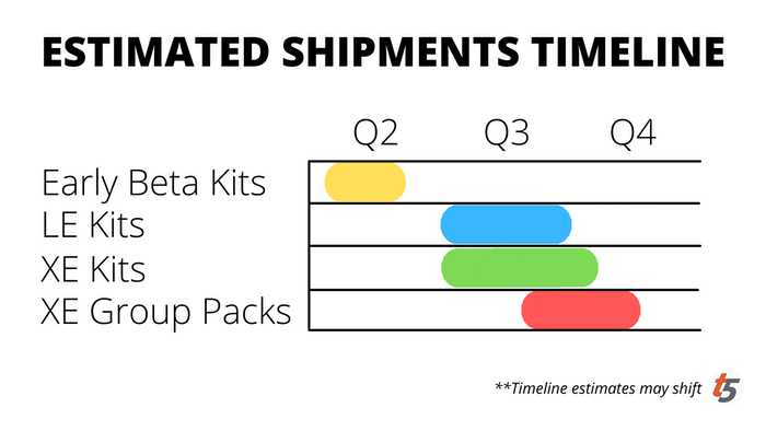 We adjusted some of the shipping timelines to coincide with optimal timing from the factory. This helps us get your kits to you all as fast as possible. We’re incredibly lucky to have supporters from over 60 countries and we can’t wait to get you your goodies. One additional detail to note is shipping estimates may vary due to region specific shipping requirements, customs, guys named Steve texting while boating on the Suez Canal..., and possibly other unforeseen factors.