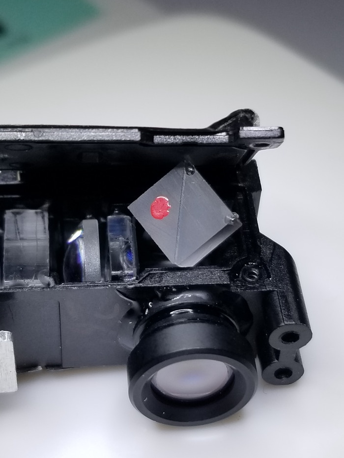 Hint: This is not supposed to be tilted like this! This is a cube beam splitter, which is used to direct light onto the liquid crystal on silicon display (LCOS).