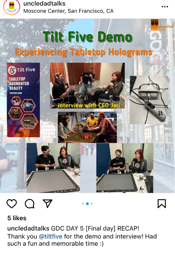Thank you to everyone who met with us, experienced the Tilt Five System, and shared their reactions on social! We love seeing your posts and the T5 swag out in the world.